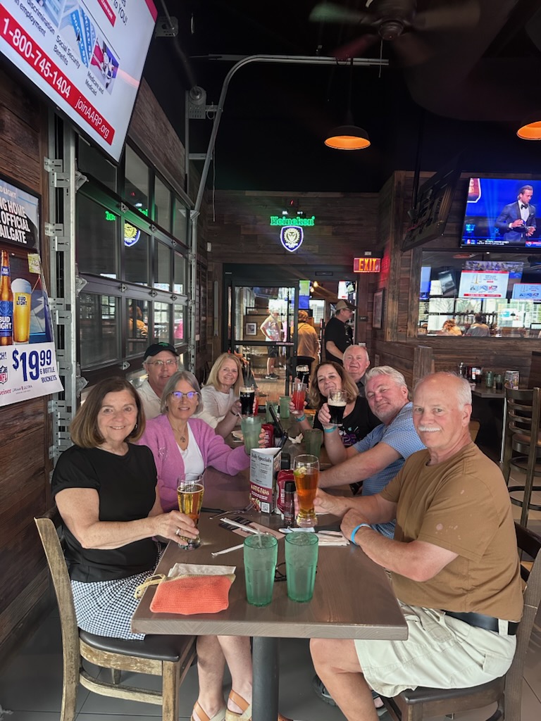 Birch Lake neighbors who escaped winter to meet in Kissimmee Florida. Dinner at Miller’s Ale House, and toast to good times in Florida.